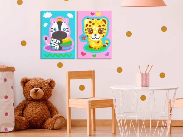 Erwecke Deine Kreativität Möchtest Du Deinem Kind eine farbenfrohe Zeit anbieten und zugleich seine manuellen Fähigkeiten entwickeln lassen? Oder sogar sein künstlerisches Talent entdecken? Dann haben wir etwas genau für Dich! Malen nach Zahlen “Zebra & Leopard (Rosa & Blau)” ist eine fantastische Idee für kreative Freizeitgestaltung. Wenn Dein Kind gerne Zeit mit Zeichnen und Malen verbringt, wird das Kinder-Mal-Set genau seinen Erwartungen entsprechen. Das Bild, das durch Malen nach Zahlen geschaffen wird, wird zu einzigartiger Geschenkidee oder selbst gemälter Zimmerdekoration. Bunte Tiere und Märchenlieblingscharakter warten nur darauf, bemalt zu werden!