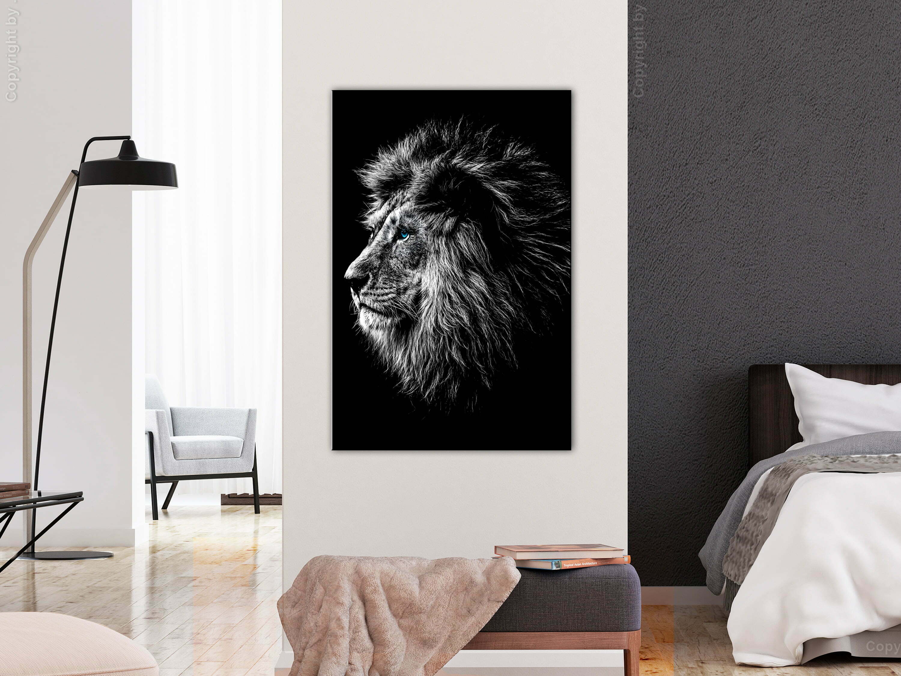 Lassen Sie es zu, dass das Bild “Blue-eyed Lion (1 Part) Vertical” Ihr Zuhause und das Heim Ihrer Bekannten verändert!