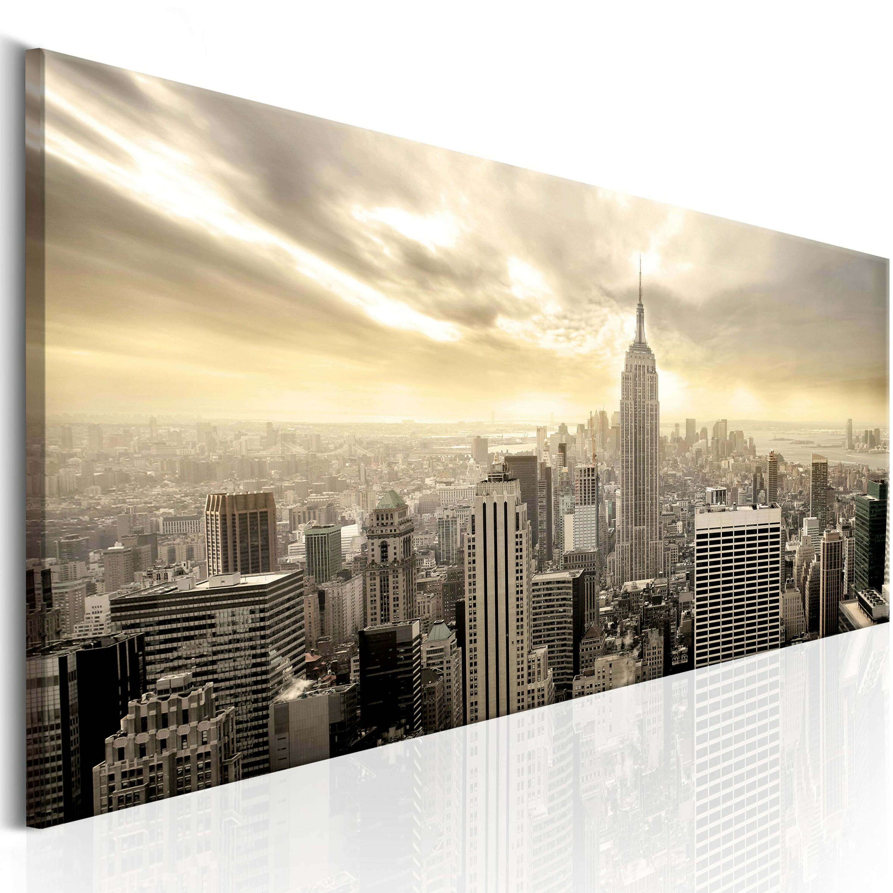 Materialien von bester Qualität Das Bild “City in the Sun” ist auf spezieller Vlieseline-Leinwand gedruckt, die perfekt die Farben wiedergibt. Die Leinwand ist auf einen leichten, aber stabilen Rahmen gespannt, der aus umweltfreundlichen Materialien gefertigt ist. Für Dekorationen auf höchstem Niveau sorgt ein hochwertiger Druck, dank welchem die Farben ausdruckstark und die Details hervorragend abgebildet sind, unabhängig vom Format des Bildes.