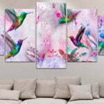 Lassen Sie es zu, dass das Bild “Colourful Hummingbirds (5 Parts) Wide Violet” Ihr Zuhause und das Heim Ihrer Bekannten verändert!