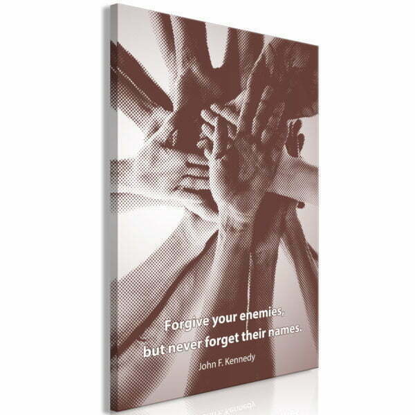 Das hochwertige Bild “Forgive Your Enemies, But Never Forget Their Names (1 Part) Vertical” ist das Ergebnis der Arbeit eines talentierten Projektanten-Teams – junger Künstler, Grafiker und Fotografen, deren Kopf voller Ideen ist. Das Bild, das Ihr Interesse geweckt hat, vereint hochwertigen Druck, sorgfältige Handarbeit und hochwertigste Materialien in sich.