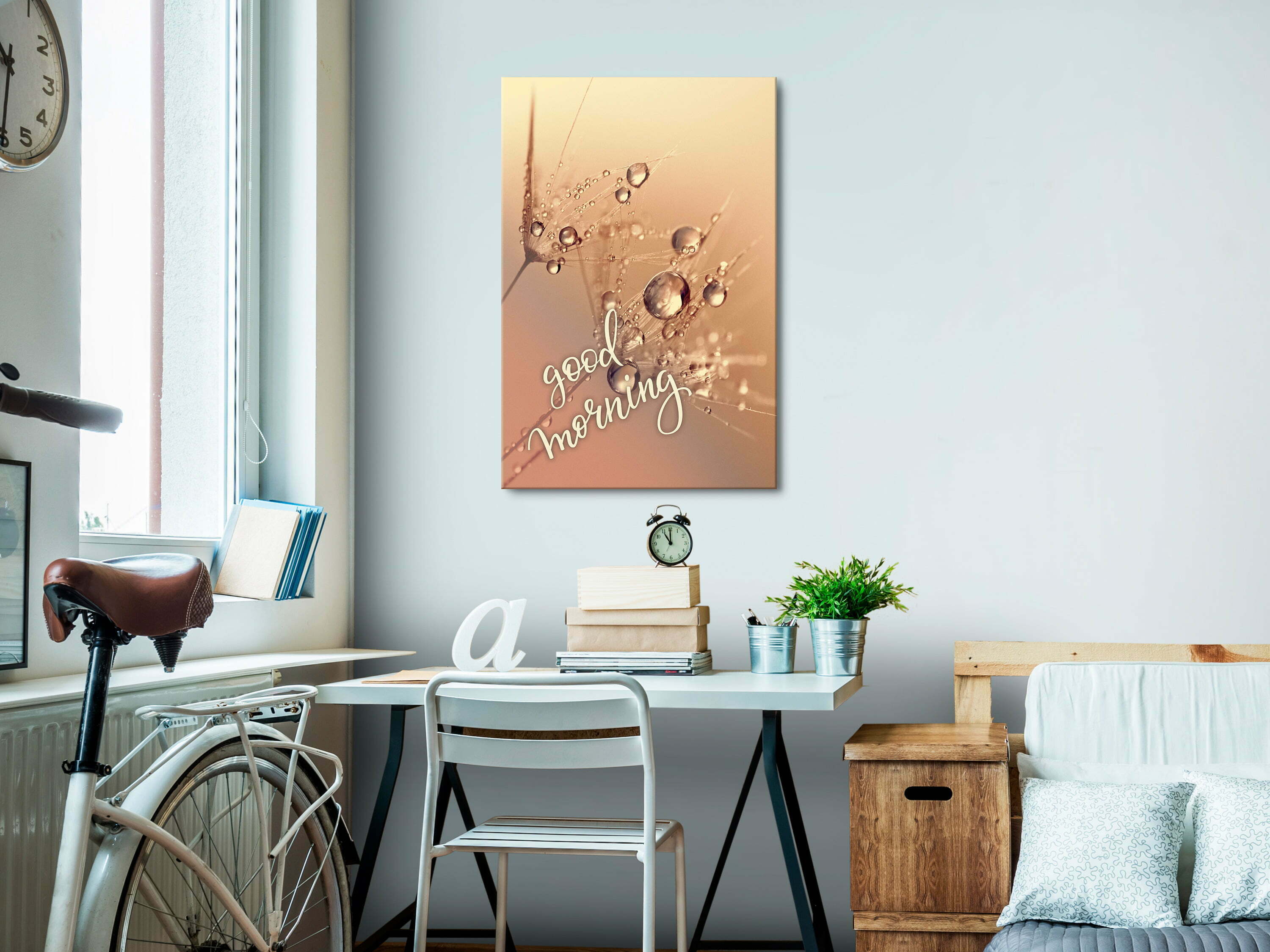 Materialien von bester Qualität Das Bild “Good Morning (1 Part) Vertical” ist auf spezieller Vlieseline-Leinwand gedruckt, die perfekt die Farben wiedergibt. Die Leinwand ist auf einen leichten, aber stabilen Rahmen gespannt, der aus umweltfreundlichen Materialien gefertigt ist. Für Dekorationen auf höchstem Niveau sorgt ein hochwertiger Druck, dank welchem die Farben ausdruckstark und die Details hervorragend abgebildet sind, unabhängig vom Format des Bildes.