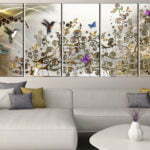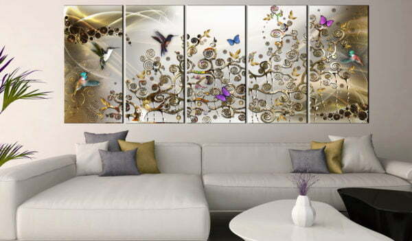 Wandbild – Hummingbirds Dance (5 Parts) Gold Narrow