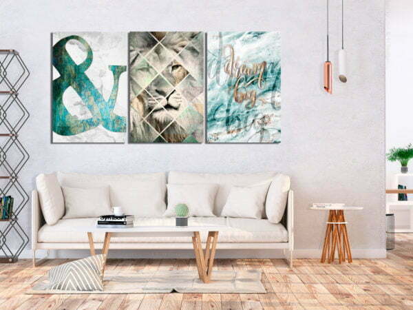 Wollen Sie das Aussehen Ihrer Wohnung verändern? Fühlen Sie beim Betreten Ihres Zuhauses, dass es an der Zeit für Veränderungen ist? Oder brauchen Sie vielleicht ein tolles Geschenk?Das hochwertige Bild “Lion Dreams (3 Part)” ist das Ergebnis der Arbeit eines talentierten Projektanten-Teams – junger Künstler, Grafiker und Fotografen, deren Kopf voller Ideen ist. Das Bild, das Ihr Interesse geweckt hat, vereint hochwertigen Druck, sorgfältige Handarbeit und hochwertigste Materialien in sich.