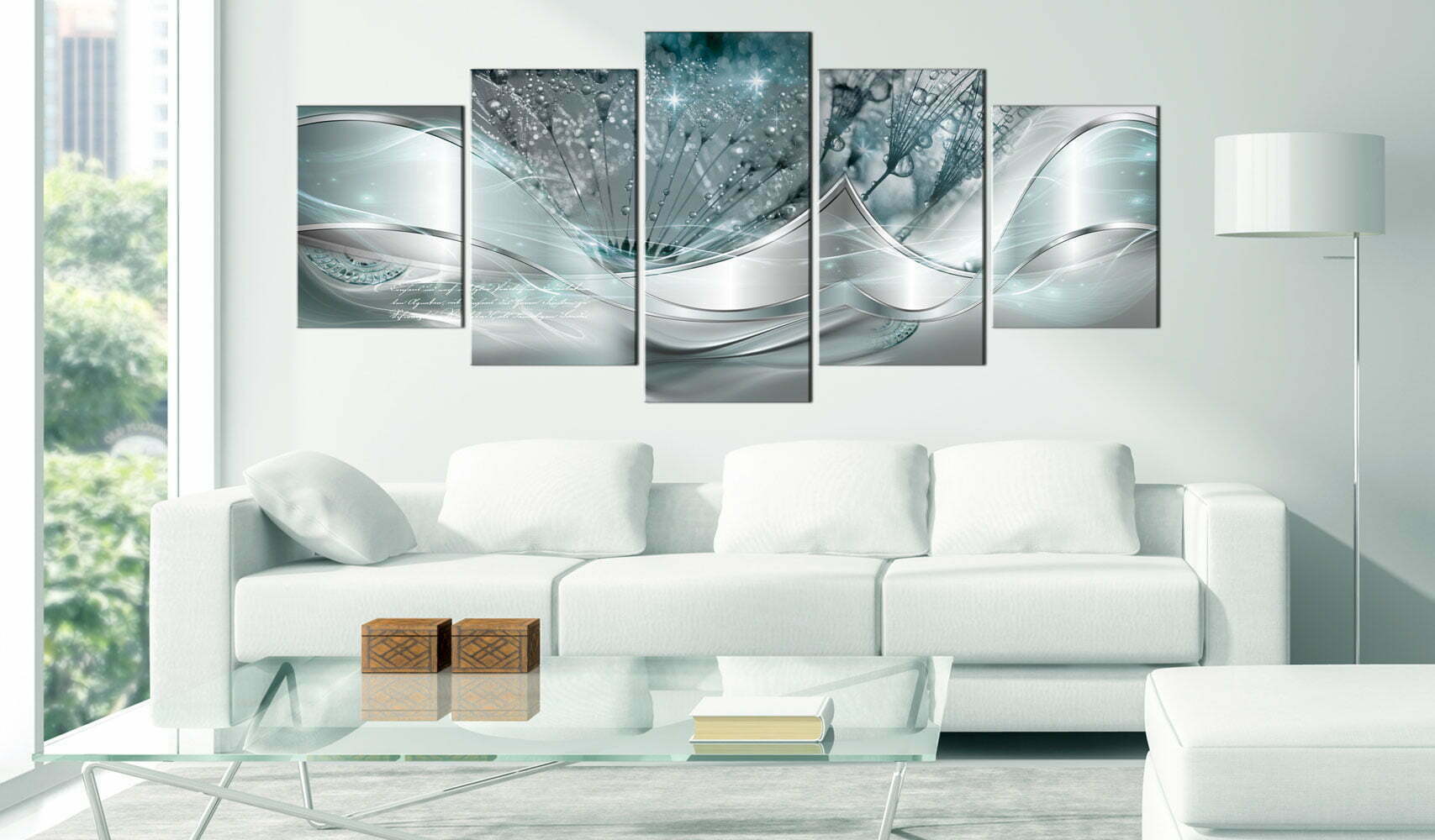 Wandbild – Modern Dandelions (5 Parts) Blue Wide