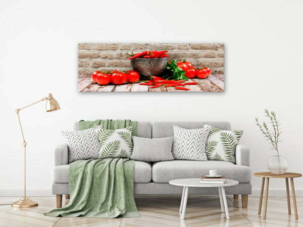 Materialien von bester Qualität Das Bild “Red Vegetables (1 Part) Brick Narrow” ist auf spezieller Vlieseline-Leinwand gedruckt, die perfekt die Farben wiedergibt. Die Leinwand ist auf einen leichten, aber stabilen Rahmen gespannt, der aus umweltfreundlichen Materialien gefertigt ist. Für Dekorationen auf höchstem Niveau sorgt ein hochwertiger Druck, dank welchem die Farben ausdruckstark und die Details hervorragend abgebildet sind, unabhängig vom Format des Bildes.