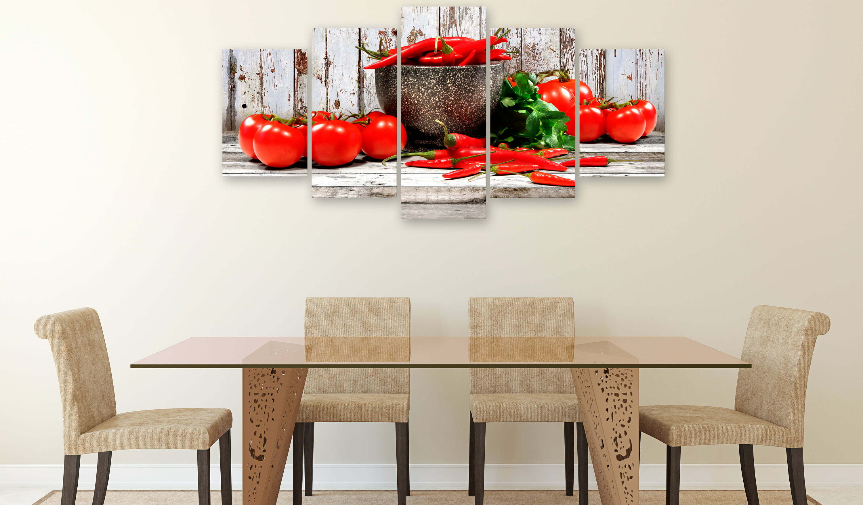 Wollen Sie das Aussehen Ihrer Wohnung verändern? Fühlen Sie beim Betreten Ihres Zuhauses, dass es an der Zeit für Veränderungen ist? Oder brauchen Sie vielleicht ein tolles Geschenk?Das hochwertige Bild “Red Vegetables (5 Parts) Wood Wide” ist das Ergebnis der Arbeit eines talentierten Projektanten-Teams – junger Künstler, Grafiker und Fotografen, deren Kopf voller Ideen ist. Das Bild, das Ihr Interesse geweckt hat, vereint hochwertigen Druck, sorgfältige Handarbeit und hochwertigste Materialien in sich.