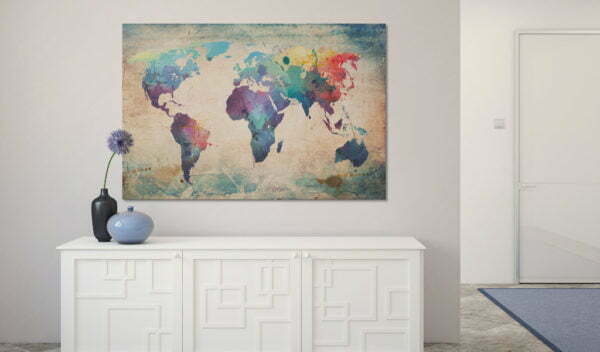 Lassen Sie es zu, dass das Bild “Regenbogen-Weltkarte” Ihr Zuhause und das Heim Ihrer Bekannten verändert!