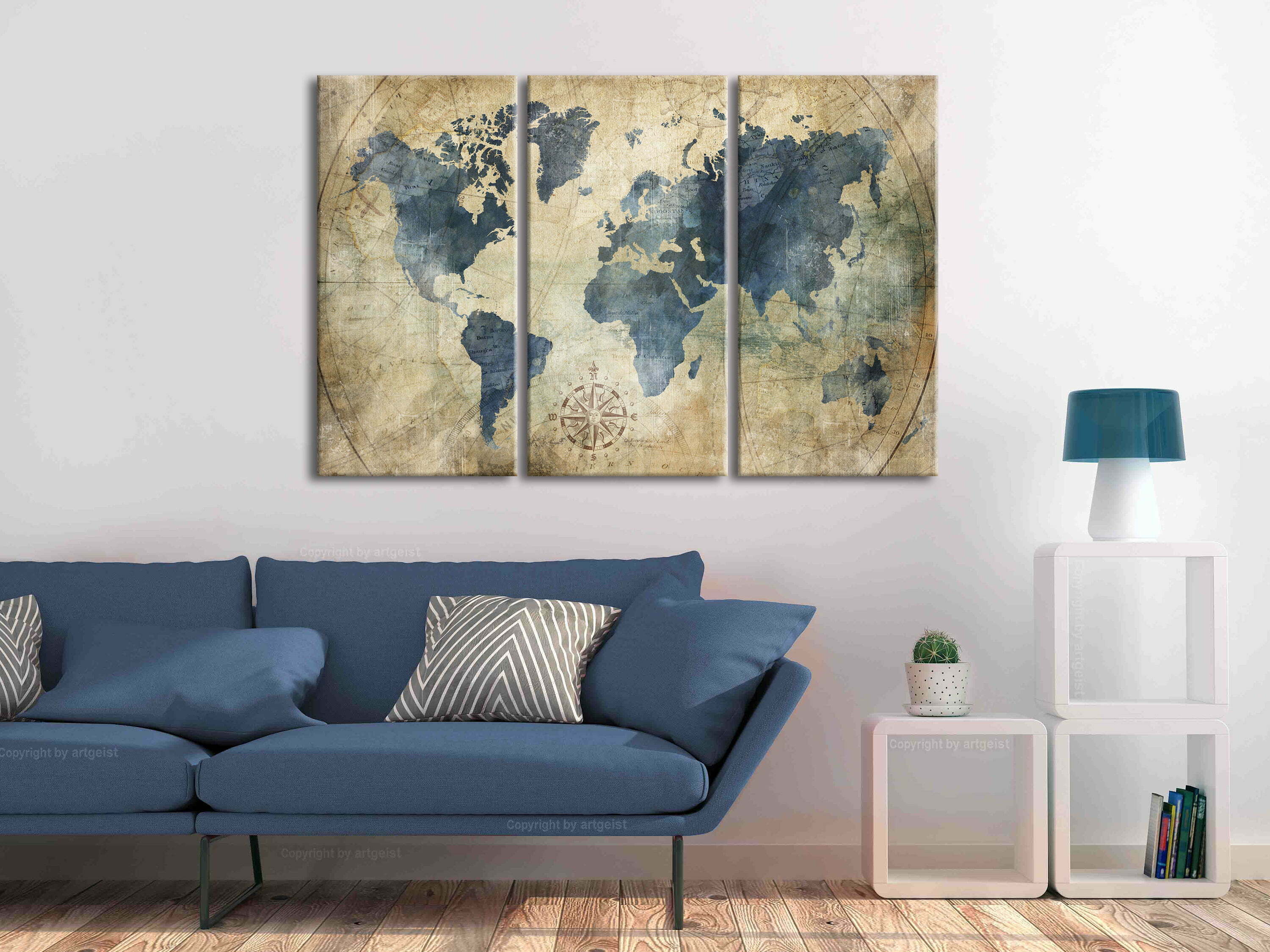 Lassen Sie es zu, dass das Bild “Retro Map (3 Parts)” Ihr Zuhause und das Heim Ihrer Bekannten verändert!
