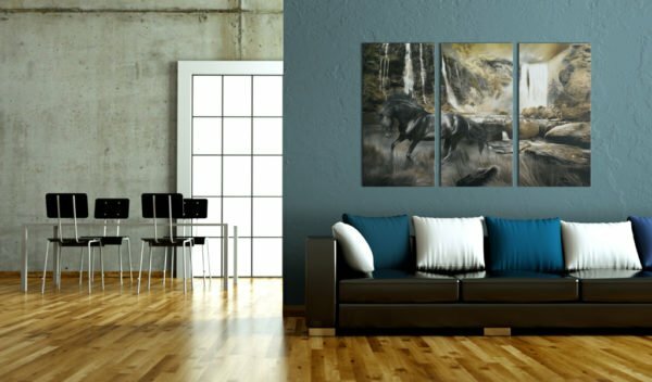 Lassen Sie es zu, dass das Bild “Schwarzes Pferd und Wasserfall” Ihr Zuhause und das Heim Ihrer Bekannten verändert!