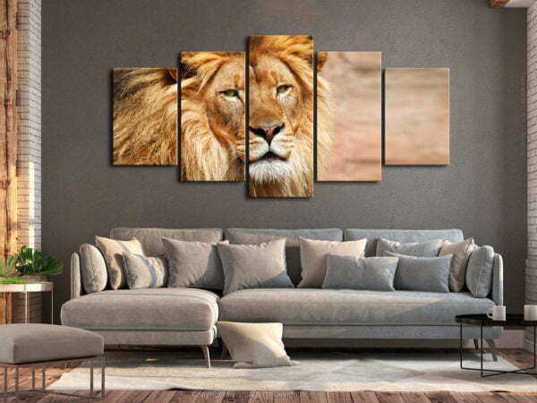 Wollen Sie das Aussehen Ihrer Wohnung verändern? Fühlen Sie beim Betreten Ihres Zuhauses, dass es an der Zeit für Veränderungen ist? Oder brauchen Sie vielleicht ein tolles Geschenk?Das hochwertige Bild “The King of Beasts (5 Parts) Wide Orange” ist das Ergebnis der Arbeit eines talentierten Projektanten-Teams – junger Künstler, Grafiker und Fotografen, deren Kopf voller Ideen ist. Das Bild, das Ihr Interesse geweckt hat, vereint hochwertigen Druck, sorgfältige Handarbeit und hochwertigste Materialien in sich.