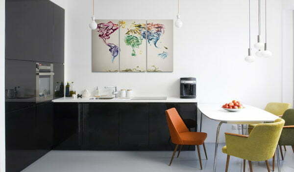 Lassen Sie es zu, dass das Bild “Weltkarte – bunte Rauchfahnen – Triptychon” Ihr Zuhause und das Heim Ihrer Bekannten verändert!