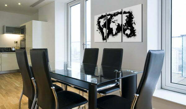 Lassen Sie es zu, dass das Bild “Weltkarte in Schwarz und Weiß” Ihr Zuhause und das Heim Ihrer Bekannten verändert!