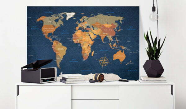 Lassen Sie es zu, dass das Bild “World Map: Ink Oceans” Ihr Zuhause und das Heim Ihrer Bekannten verändert!
