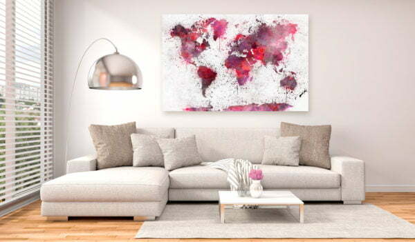 Wollen Sie das Aussehen Ihrer Wohnung verändern? Fühlen Sie beim Betreten Ihres Zuhauses, dass es an der Zeit für Veränderungen ist? Oder brauchen Sie vielleicht ein tolles Geschenk?Das hochwertige Bild “World Map: Red Watercolors (1 Part) Wide” ist das Ergebnis der Arbeit eines talentierten Projektanten-Teams – junger Künstler, Grafiker und Fotografen, deren Kopf voller Ideen ist. Das Bild, das Ihr Interesse geweckt hat, vereint hochwertigen Druck, sorgfältige Handarbeit und hochwertigste Materialien in sich.