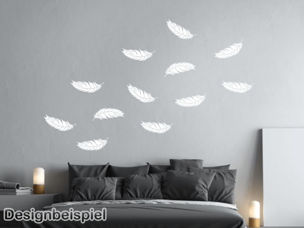 Die einzelnen Federn können nach Belieben auf Ihrer Wand verteilt werden. Dadurch können Sie die Größe des Wandtattoos selbst bestimmen!