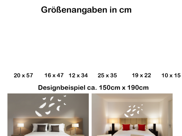 Die einzelnen Aufkleber können nach Belieben auf Ihrer Wand verteilt werden. Dadurch können Sie die Größe des Wandtattoos selbst bestimmen!