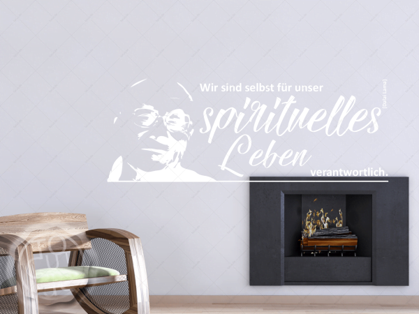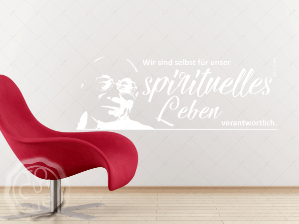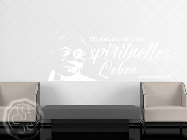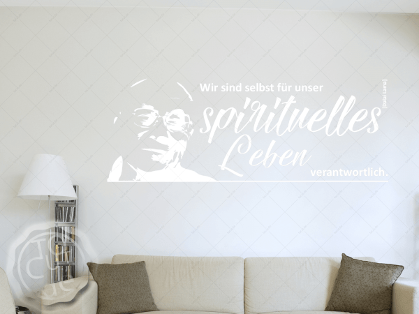 Wandtattoo unser spirituelles Leben (Daila Lama). Wandtattoos bieten eine Vielzahl an Gestaltungsmöglichkeiten. Mit unseren modernen Schneideplottern schneiden wir jedes beliebige Motiv aus selbstklebenden Folien, egal ob Schriftzüge wie Sprüche oder Gedichte, Motive wie Skylines oder Blumen oder andere Grafiken. Wir fertigen Wandtattoos ganz individuell für Sie an. Schriftart, Farbe und Motiv der Wandtattoos sind dabei ganz Ihren Wünschen überlassen.